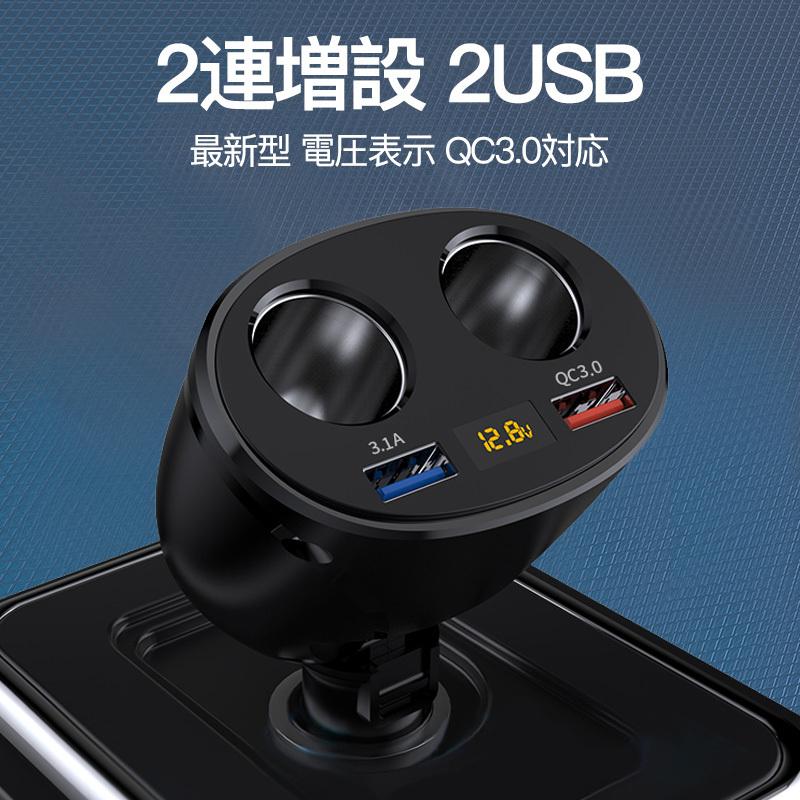 受注生産品 シガーソケット Usb 増設 2連 車載充電器 Qc3 0 4 8a カーチャージャー 電圧計 24v 12v 車用 2ポート 高速 車 急速 トラック 付き